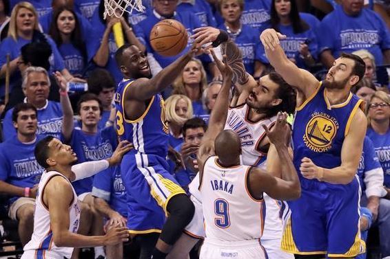 雷霆带着3-2的优势回到了主场,雷霆开场表现不错,一直保持着微弱的领先优势,勇士第三节的突然哑火让雷霆把比分领先优势扩大到8分,全队危机之时,今天手感热的发烫的克莱-汤普森连续命中三分,全场命中破纪录的11记三分帮助勇士生生将比赛拿下,双方进入抢七。